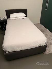 Vendo letto e materasso marca Flou, colore grigio scuro, con contenitore e doghe in legno. Materasso versione medio-morbida, condizioni come nuovo. É stato usato molto poco perché mio figlio si é trasferito per studiare all’estero.