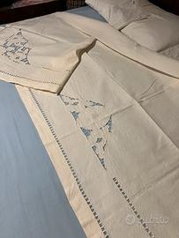 Dimensioni traversa letto matrimoniale 84 x 240 cm Dimensioni per federe 50 x 79 cm Traversa e federe del 1925 fatte a mano. Preferibile spedizione a meno.