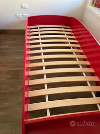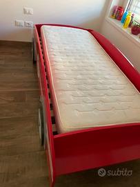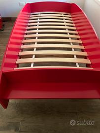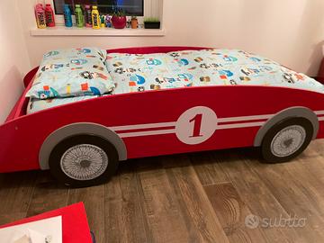 Vendo letto in legno per bambini a forma di automobile da corsa Maison Du Monde, modello Circuit, completo di doghe in legno. Il letto presenta delle sponde laterali e due vani alle estremità. Dimensioni: cm. 235x94. Spazio per materasso: 190x90. In ottime condizioni. Prezzo: 200 €.Eventualmente disponibile anche materasso.