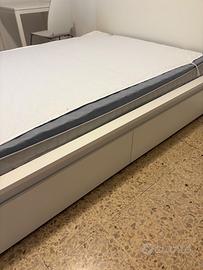 Ottimo letto matrimoniale con doghe rinforzate , tenuto benissimo. 4 ampi cassetti, materasso incluso. Già smontato . Trasportabile in un’auto station o mono volume
