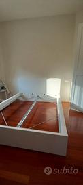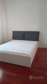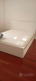 Struttura letto matrimoniale MALM IKEA bianco, misure 160 x 200, altezza testata 100 cm. Rete in doghe in legno. Il letto è stato poco utilizzato e smontato una sola volta. Non sono inclusi i cassetti ( visibili in alcune foto) mentre è incluso il cuscino per testata con fodera in grigio ( come da foto) lavabili in lavatrice. Attualmente il letto è smontato e imballato assieme a tutto il materiale di montaggio necessario. Ritiro a carico dell'acquirente in zona Quacchio a Ferrara.