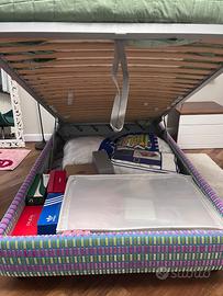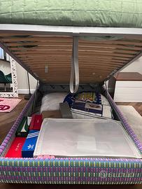 Bellissimo letto Flou Magnolia dalla linea romantica e senza tempo. Testata imbottita e rivestita, come la base, in tessuto completamente sfoderabile grazie alle pratiche chiusure in velcro, base contenitore, una piazza e mezzo 120x200 completo di materasso sempre della Flou. Condizioni ottime. Ritiro o spedizione a carico dell’acquirente.DAVVERO MOLTO BELLO