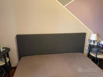 Letto con testiera imbottita. Grigio scuro.