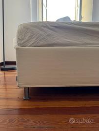 Struttura letto con contenitore e materasso in memory foam. Dimensioni 140 x 200. Inclusi due cuscini in memory foam e un piumone