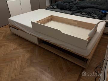 Vendo letto ikea, modello mandal misura 120x200 (piazza e mezza). Materasso abygda 120x200. 3 anni di utilizzo in appartamento e vendo per passare ad un matrimoniale. Ritiro in loco, attualmente il letto è montato e vi è la possobilità di smontarlo (presente manuale e componenti originali per rimontarlo).