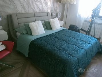 Vendo usato letto matrimoniale over size rete 195*160 quindi non standard ma dal sovrapprezzo quasi doppio marca target point modello roma.tre anni di vita e come potete vedere il prezzo ancora 2000 euro modello base .il colore e grigio .la struttura e' perfetta ,molto stabile e solida e soprattutto la spalliera che come potete vedere ha la particolarità dei poggioli che abbassandogli creano uno schienale come il sedile di un auto per vedere comodamente i film a letto senza ammazzarsi la spalla..lo cambio solo perché come potete vedere dalle foto si e spellicciato la similpelle ma x il resto e perfetto..completo di rete e pistoni cassettoni perfettamente carichi..cassettone molto capiente ..volendo lo si può ripristinare o verniciandolo con poche decine di euro con le vernici per pelli o lo si può fare rivestire da un tappezziere.comunque a letto fatto con piunone che copre tutti i fianchi e cuscini non si vede nulla.prezzo non trattabile,a quel prezzo nn si compra neanche la rete col movimento cassettone.