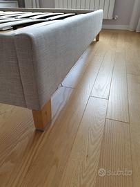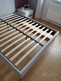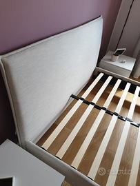 Struttura letto matrimoniale 160x200 con rete a doghe incorporata. Giroletto rivestito in tessuto beige neutro. Ottime condizioni. A richiesta regalo materasso in memory foam 160x200. Il letto sarà disponibile tra circa 3 settimane. Ritiro a mano, il letto sarà consegnato smontato.