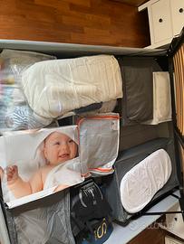 testa e corpo del letto foderati, con coperture in cotone lavabile e sfoderabile.