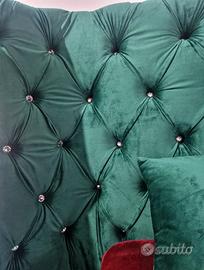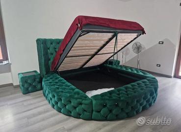 Vendo letto matrimoniale completo di 2 comodini e materasso nuovissimo 180x200 cm, mai usato, personalizzato con botoni di vetro come si vede nelle foto. Pagato 5000€ , vendo a 1350€ per causa trasloco fine gennaio 2026