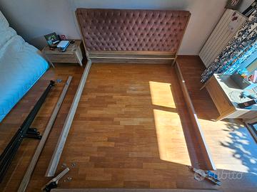 Vendo letto matrimoniale 180x200, completo di testiera imbottita e 2 comodini coordinati. Il letto è già smontato, pronto per il ritiro. Struttura robusta, in ottime condizioni. Materasso non incluso. Ritiro e trasporto a carico dell’acquirente.