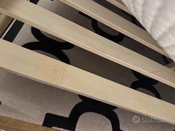 Vendo struttura letto matrimoniale king size (rete 180x200) usata ma in condizioni perfette. La struttura ha una base in legno, doghe in legno e testata in tessuto. Solo ritiro a Milano, zona Bocconi Porta romana. Il letto viene consegnato smontato. Materasso non incluso.
