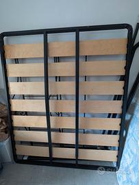 Vendesi letto matrimoniale a baldacchino in ferro battuto in ottime condizioni, con rete a doghe da una piazza e mezza