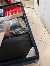 Vendo letto matrimoniale a contenitore in cotone color blu sfoderabile marcato PER DORMIRE Ottime condizioni misure: 1,78 x 2,02 Regalo materasso memory buone condizioni. € 200 La merce si trova al piano terra facilmente trasportabile. Smontaggio e ritiro a carico dell’acquirente.
