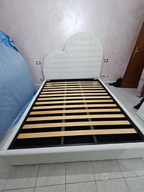 Letto matrimoniale fuori produzione a forma di cuore con cassettone. Vendo per errato acquisto di colore. Il letto è in ecopelle bianca. Perfetto. Montato da addetti al montaggio e subito rismontato e imballato. Rete ortopedica.