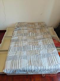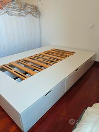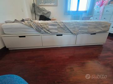Struttura letto IKEA NORDLI 140 x 200 bianco, con 6 cassetti laterali. Qualche piccolo segno di usura ma che non compromette l'estetica o le funzionalità. Regalo materasso e lenzuoli su misura.