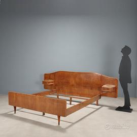 Letto matrimoniale vintage con impiallacciatura in radica d'acero, due piccoli