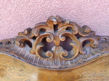 vendo per inutilizzo antico letto matrimoniale in legno con preziose lavorazioni, comprese traverse per il montaggio. il mobile presenta qualche segno di tarlo, quindi da trattare.