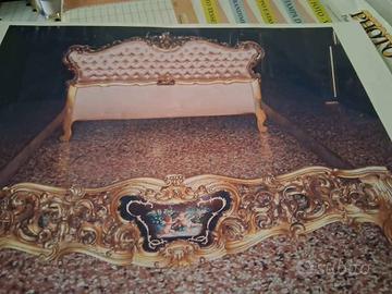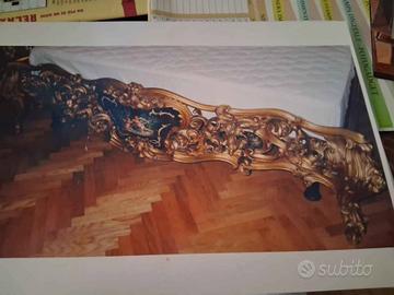 letto antico a due piazze in legno finemente intagliato ed in parte dorato. Italia centrale fine XIX secolo.