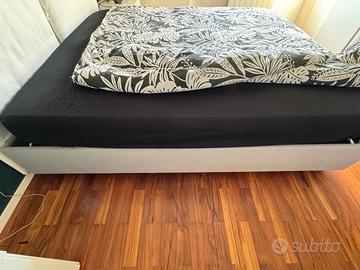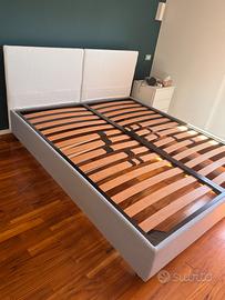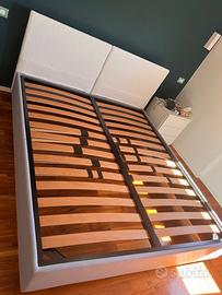 Letto matrimoniale artigianale Misure 212*177 Doppie doghe in legno Tessuto sfoderabile bianco No contenitore Pronto per il ritiro in box