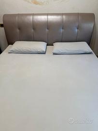Letto matrimoniale in pelle, compreso di materasso Tempur, senza contenitore