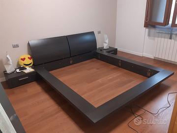 Vendo letto matrimoniale color wenge+due comodini+ rete a doghe in legno + materasso 160x190
