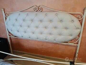 vendo letto matrimoniale in ferro battuto , con testata in simil pelle rovinata nella parte bassa