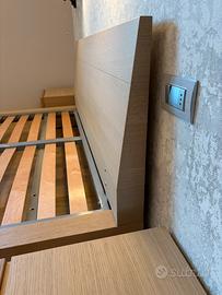 Letto Matrimoniale in rovere sbiancato su misura della Caccaro Arredamenti, completo di reti con doghe e comodini. Di seguito i dettagli con le misure in cm: LETTO: Rete con doghe 208x160 Letto telaio 226x180, altezza 27 COMODINI: L51xH36xP44 Vendo anche separatamente letto/comodini Il letto è gia smontato e pronto per il trasporto. Per la ricerca: letto, matrimoniale, comodini, legno