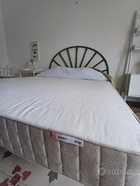 Letto completo di testiera in vimini, rete con doghe in legno e materasso matrimoniale ikea. Tutto in perfetto stato. Da segnalare solo piccole macchie di ruggine in alcuni punti del materasso che poggiano sulla parte in ferro della rete in quanto presenta alcune parti intaccate.