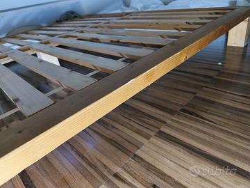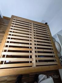 Vendo struttura letto matrimoniale Cinus in legno massello tutto a incastro, zero parti metalliche, in ottime condizioni completo di rete a doghe in legno. Largo 219 cm x e lungo 197 cm, altezza 22 cm. Ritiro su Torino. Comodo il trasporto da smontato.