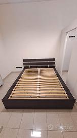 Vendo letto matrimoniale color noce scuro completo di rete e materasso. MISURE : lunghezza totale 207 cm larghezza totale 183 cm altezza lato testiera 86 cm altezza lato pediera 30 cm