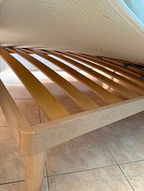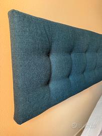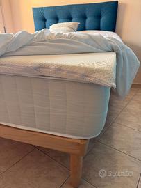 Vendo letto matrimoniale francese 120 x 190 completo in ottime condizioni, pronto all’uso, composto da: •Struttura in legno con doghe solide h 35 cm •Testiera imbottita trapuntata in tessuto blu, elegante e moderna •Materasso Baldiflex Aloe Memory (memory foam con aloe vera), confortevole e traspirante alto 27 cm •Topper aggiuntivo di alta qualità alto 5 cm (pagato €200), che aumenta notevolmente il comfort del materasso Il letto è stabile e ben tenuto. Materasso e topper sempre utilizzati con protezione, quindi puliti e igienizzati. Soluzione completa ideale per chi cerca comfort senza dover acquistare nulla a parte. Note: Venduto per cambio arredamento. Prezzo trattabile, ma evito offerte ridicole.