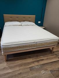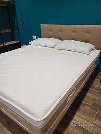 Vendo bellissimo letto matrimoniale completo, in condizioni eccellenti, come da foto. Design moderno, con testiera imbottita color talpa e giroletto in legno chiaro. Rete a doghe inclusa. Il materasso e i cuscini NON sono inclusi nell'offerta (vendo solo la struttura e la rete). Il prezzo è leggermente trattabile. CONDIZIONI DI VENDITA: Lo smontaggio e il trasporto sono interamente a carico dell'acquirente. Non effettuo spedizioni né consegne. Zona di ritiro: Palo del Colle (Bari). No affaristi o perditempo.