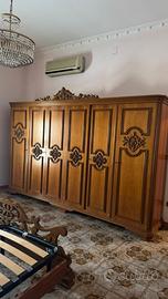 Armadio e letto matrimoniale in legno di noce