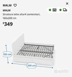 letto matrimoniale nuovo mai usato con doghe in legno. ikea. solo montato.