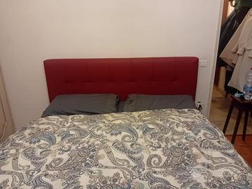 letto matrimoniale standard con cassone contenitivo in ecopelle colore bordeaux, completo di materasso matrimoniale ortopedico come da foto allegate. usati pochissimo. In ottimo stato.