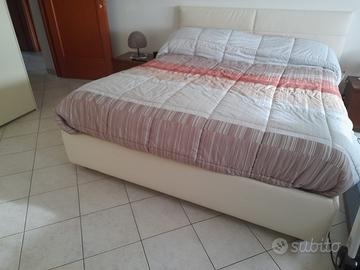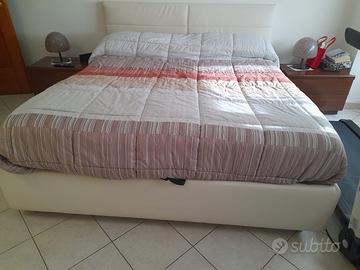 Vendesi bellissimo letto matrimoniale con contenitore capiente acquistato cinque anni fa. In ecopelle color panna, come nuovo, utilizzato solo da signora anziana gracilina. Si vende per causa sostituzione con letto ortopedico. Letto super comodo. Materasso in regalo se richiesto. Misure 160*190. Doghe in legno. Si fa presente che lo smontaggio sarà a carico dell’acquirente.
