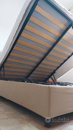 letto matrimoniale con contenitore e cuscini imbottiti + materasso incluso