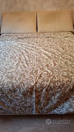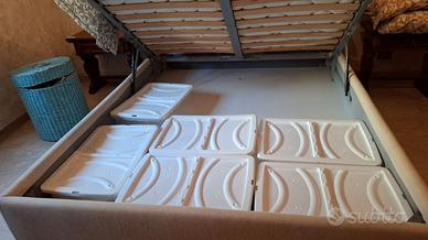 letto modello Teseo, tessuto B-negramaro, con contenitore, piedi h11, colore faggio. Dimensioni: 172x213