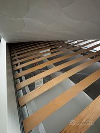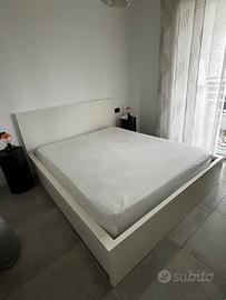 Letto matrimoniale ikea bianco con doghe in legno e due cassetti contenitori.