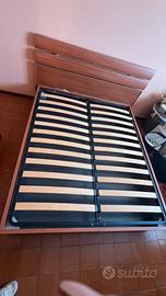 Letto matrimoniale con doghe e copertura attorno più testiera. Materassi singoli presenti (anche se non in foto)