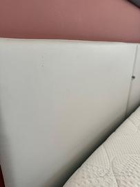 In buone condizioni ha solo dei segnetti sulla testata in pelle ma volendo si può far sistemare la pelle, intorno è in tessuto grigio ( simil felcro per far capire) pagato in negozio di arredamento su misura 2500€
