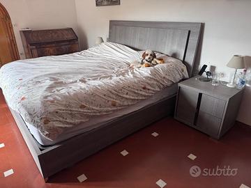 Vendo set completo per la camera da letto in buone condizioni. Include una moderna struttura per letto matrimoniale, un comodo materasso e due comodini coordinati con finitura in legno grigio. Il tutto viene venduto singolarmente.