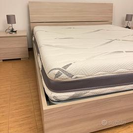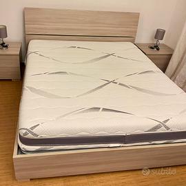 Vendo letto matrimoniale completo in ottime condizioni, pari al nuovo. Il set comprende: - Letto matrimoniale con struttura moderna color legno chiaro - Materasso ortopedico di qualità (pagato 450€), ideale per la schiena - 2 comodini abbinati Il letto è solido e spazioso, con possibilità di utilizzare lo spazio sotto per riporre scatole, valigie o altri oggetti. Il materasso è stato sempre usato con coprimaterasso, quindi è pulito e ben tenuto. Misure standard matrimoniale Prezzo: 480€ trattabili