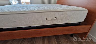letto matrimoniale in legno colore marrone comprensivo di rete a doghe con piedini e materasso. Buone condizioni.