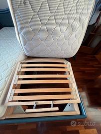 Coppia di reti elettriche motorizzate con telecomando e 2 materassi in lattice. Disponibili due pezzi, vendibili anche separatamente o a formare un letto matrimoniale. Come nuovi , usati pochissimo. Vendesi causa trasloco. Telaio del letto in regalo, misura adatte per appendere il telecomando. Costo: 100 euro ciascuna rete, 50 euro ciascun materasso. Trasporto a carico dell’acquirente 25