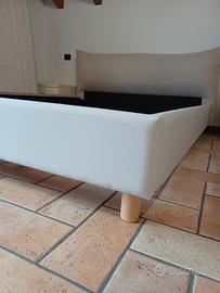 Vendo letto matrimoniale in tessuto con testata imbottita e 2 reti singole. Misure 1,70 x 2,00 Altezza 0,33 Piedini 0,11 Al ritiro il letto sarà già smontato, per chi fosse interessato posso inviare altre foto o video più chiari.