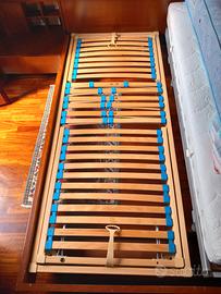 Letto matrimoniale con testiera e comodini integrati, in buono stato come da foto, reti poggiate a doghe regolabili senza materassi, color marrone.