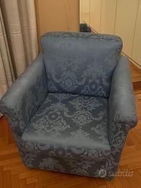 Letto completo di rete rialzabile con poltrona . Entrambi in tessuto Damasco azzurro con imbottitura