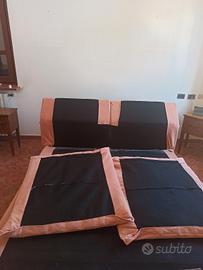 Vendo letto matrimoniale in buone condizioni, completo di struttura e testiera imbottita color pesca. La base ha la rete a doghe; rivestimento facilmente sfoderabile e lavabile. Dimensioni matrimoniali (circa 170x210 cm).