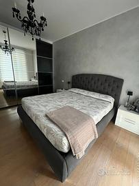 VENDESI LETTO MATRIMONIALE CONTENITORE IN TESSUTO GRIGIO CON SPALLIERA TRAPUNTATA MISURE 210 X 174 X 115 H